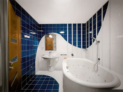 - Второй совет – чтобы сделать потолок выше, используйте вертикальные полосы на стенах. Необходимо помнить, что большие яркие рисунки на стенах дадут совершенно противоположный эффект. Зеркала – это самый лучший способ увеличить пространство. Поэтому следующий дизайнерский совет – использовать зеркала, желательно постараться разместить их друг напротив друга. Четвертая хитрость дизайнеров для визуального увеличения ванной комнаты – задействовать углы. Угловые раковины и шкафы отлично сохраняют пространство.